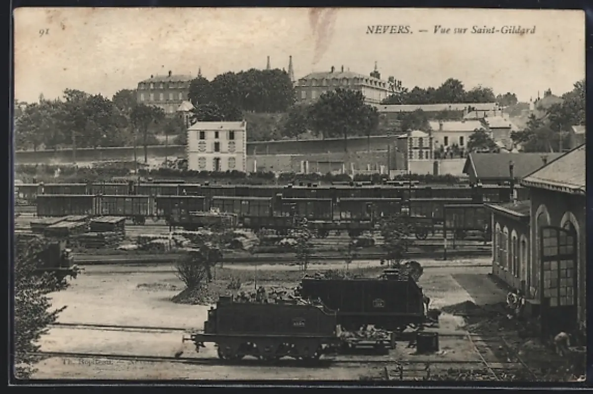 AK Nevers, Vue sur Saint-Gildard, Bahnhof