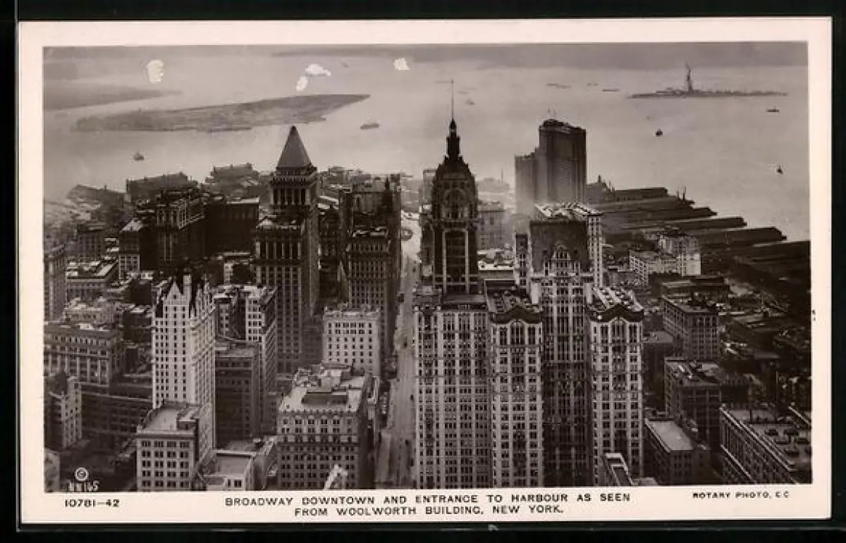 AK New York, Broadway Downtown and Entrance to Harbour as seen from Woolworth Tower