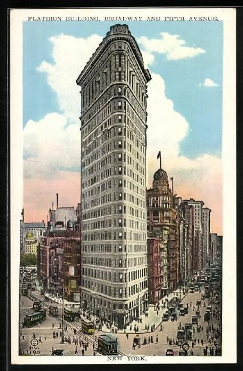 AK New York City, Fifth Avenue, Flatrion Building, Strassenbahn