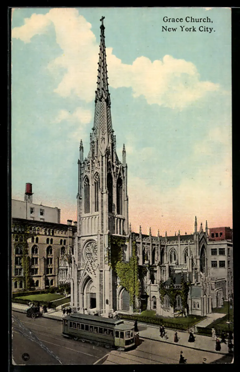 AK New York, Grace Church, Strassenbahn