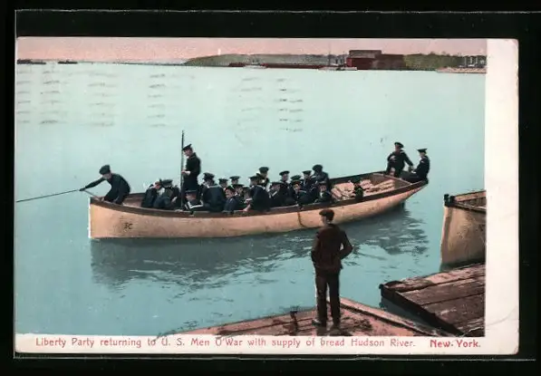 AK New York, Liberty Party returning to US Men O`War with supply of bread Hudson River
