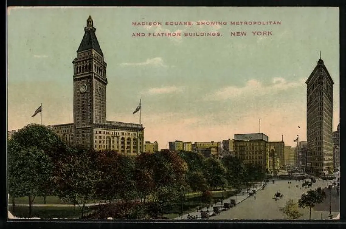 AK New York, Madison Square showing Metropolitan and Flatiron Buildings