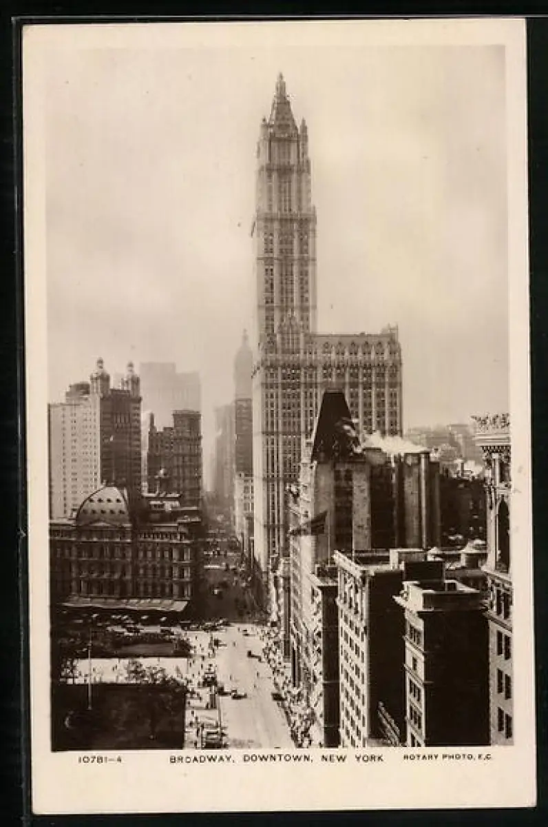 AK New York, NY, Broadway Downtown and Woolworth Building