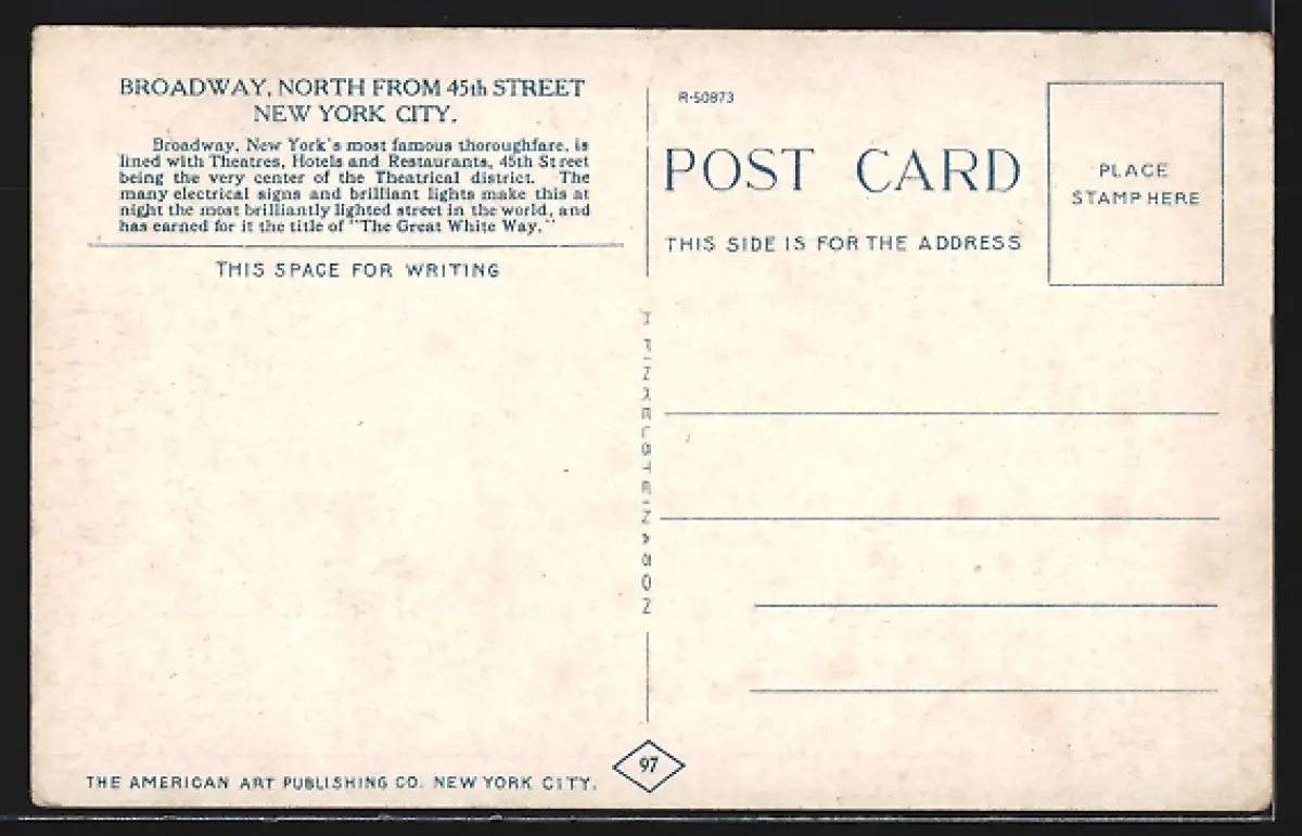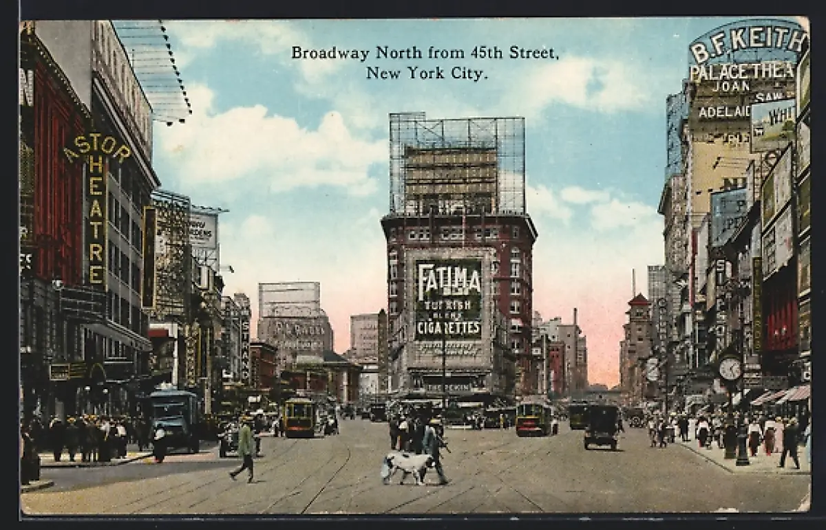 AK New York, NY, Broadway North from 45th Street with tramways, Strassenbahn