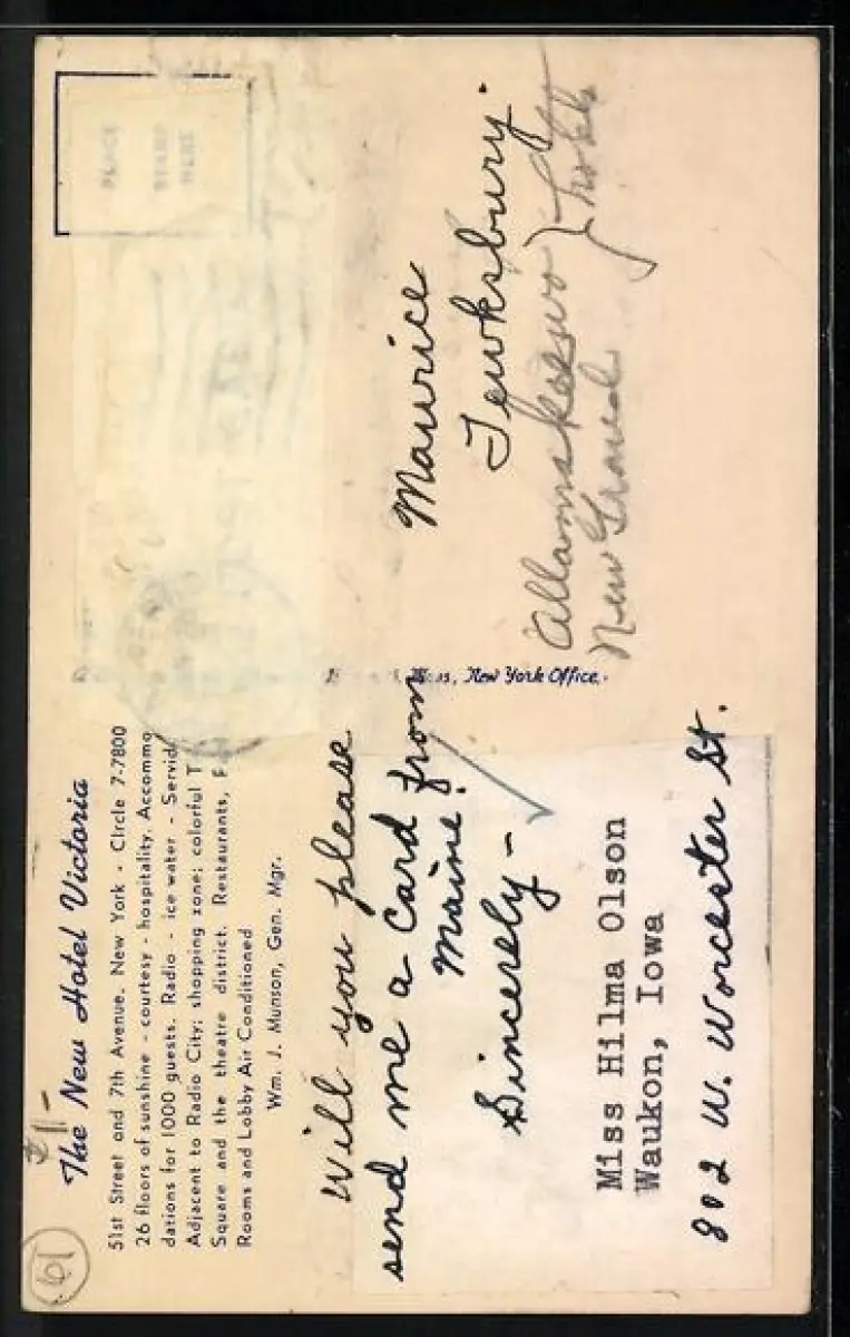 AK New York, NY, Hotel Victoria, 7th Avenue at 51st St.