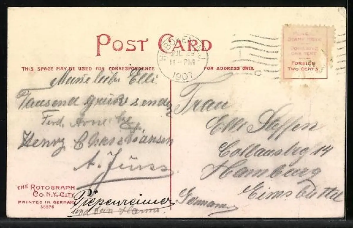 alte Ansichtskarte, gelaufen 1907, Briefmarke entfernt, Stempelspur, guter Zustand