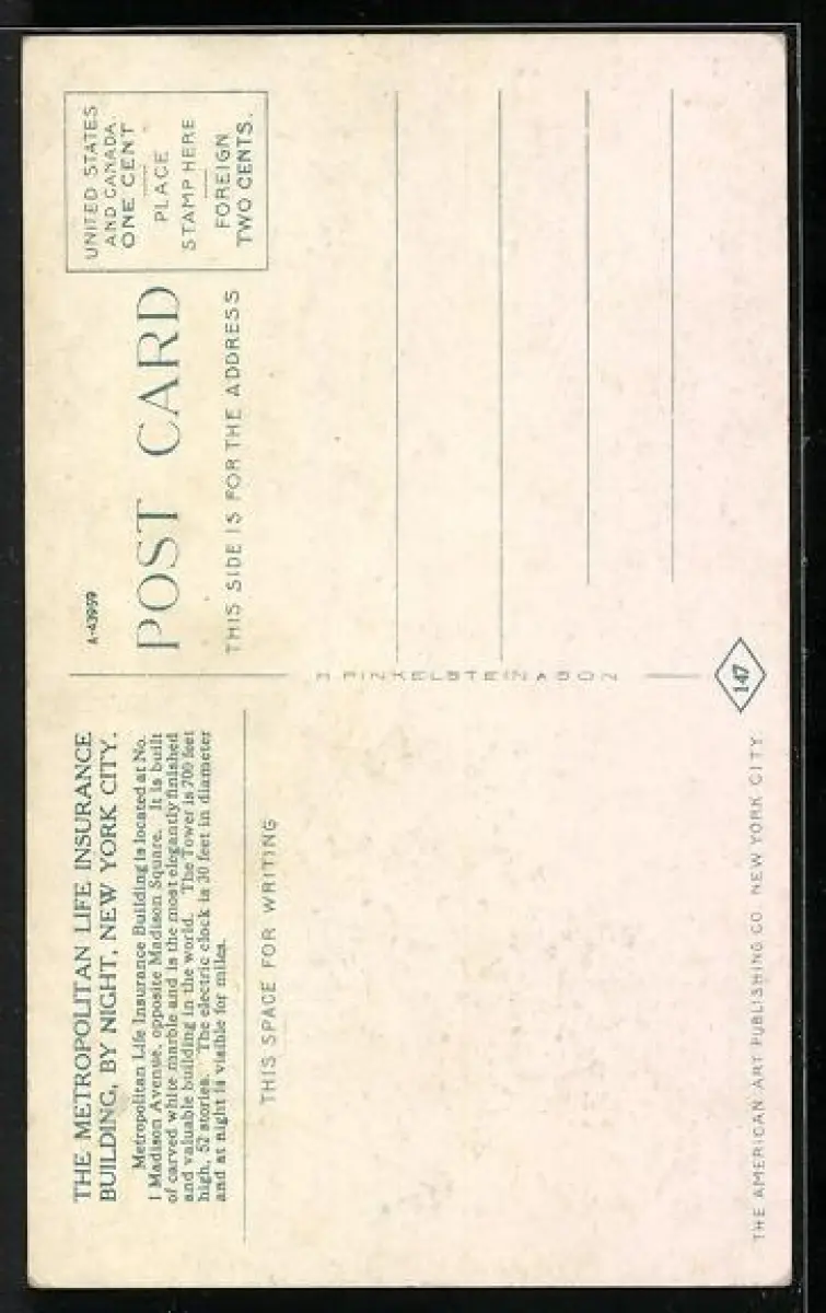 AK New York, NY, Metropolitan Life Insurance Building by Night
