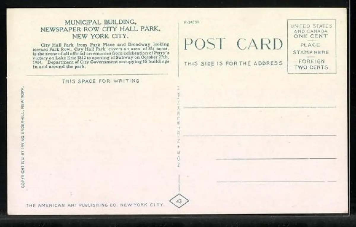 AK New York, NY, Municipal Building, Newspaper Row and City Hall Park