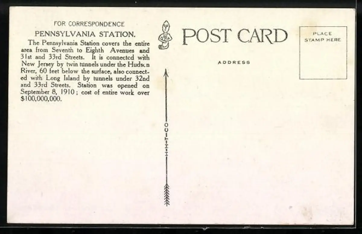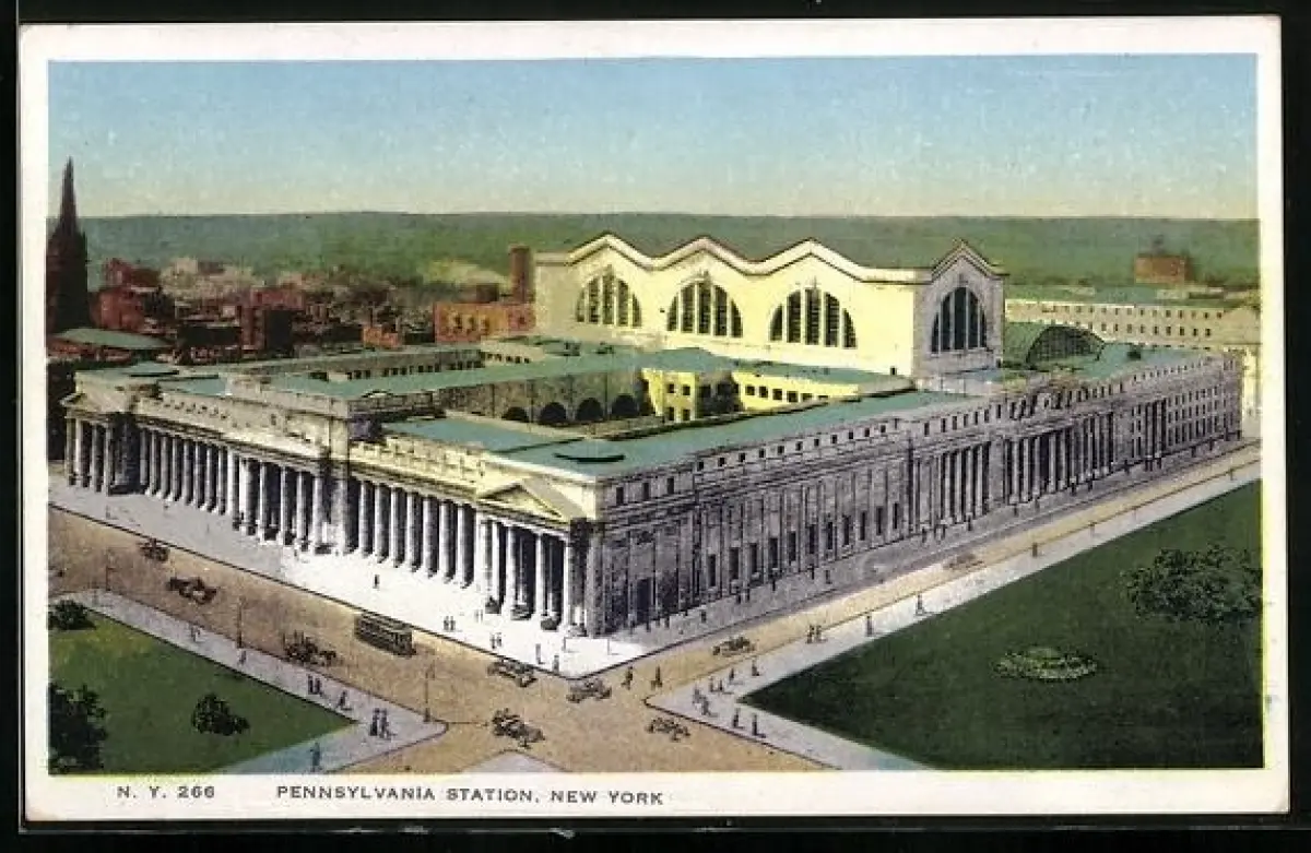 AK New York, NY, Pennsylvania Station, Strassenbahn vor dem Bahnhof