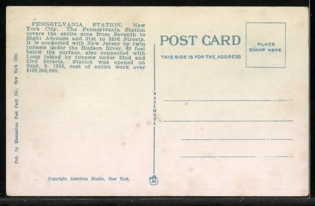 AK New York, NY, Pennsylvania Station, Strassenbahnen vor dem Bahnhof