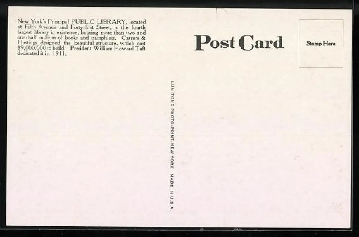 AK New York, NY, Public Library, 5th Ave. and 41st St.
