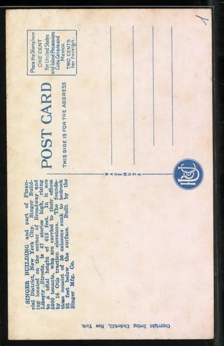 AK New York, NY, Singer Building and Part of Financial District