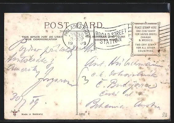 alte Ansichtskarte, ungelaufen, Eckknick rechts unten, Briefmarke entfernt, guter Zustand