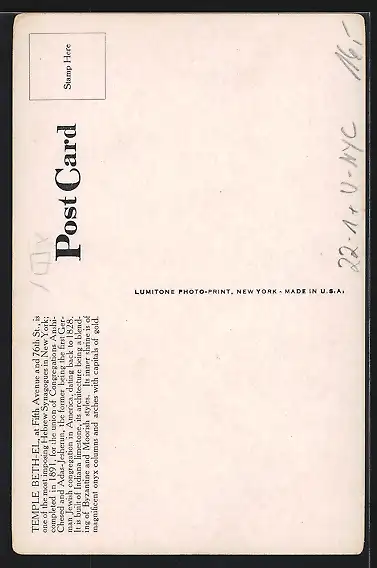 AK New York, NY, Temple Beth-El, Synagogue on Fifth Avenue and 76th Street