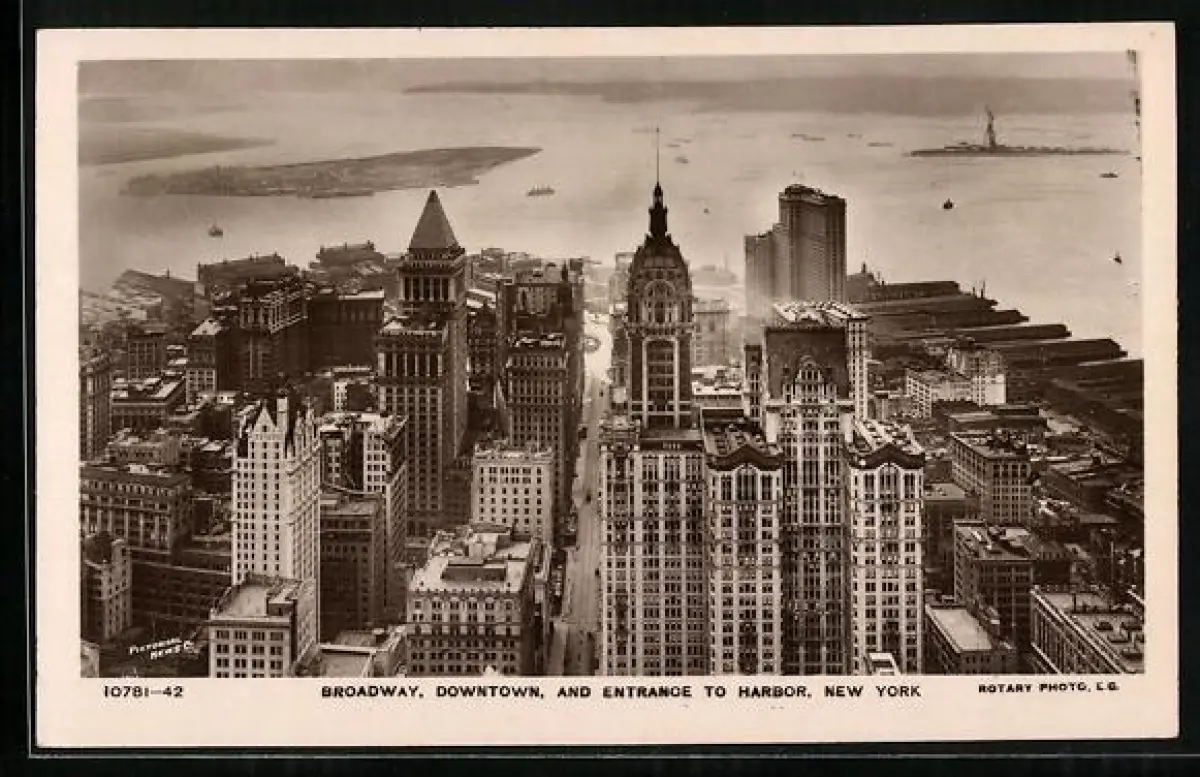 AK New York, NY, broaway and entrance to harbour, as seen from Woolworth Tower