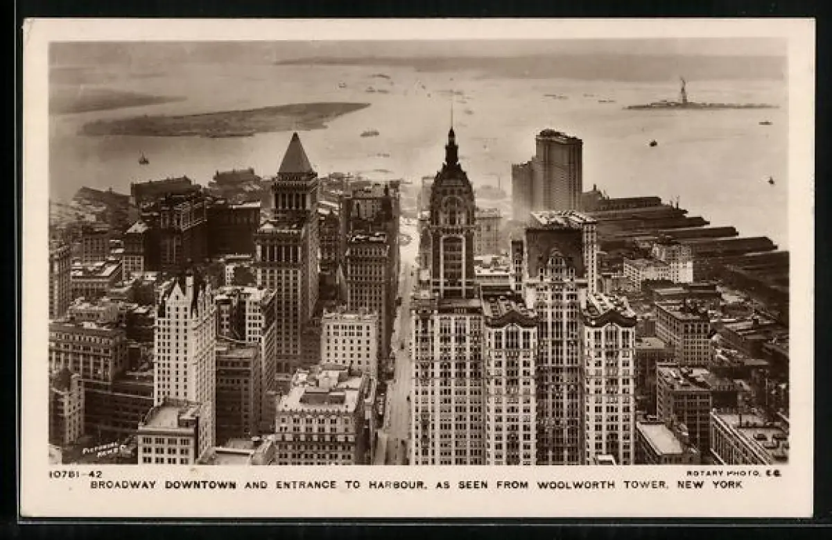AK New York, NY, broaway and entrance to harbour, as seen from Woolworth Tower