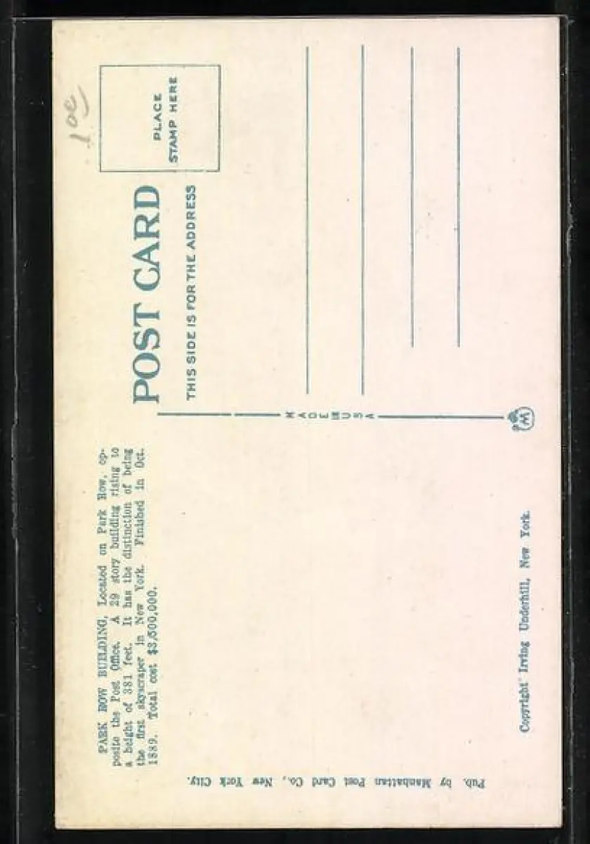 Personenbezogene Daten auf der Rückseite der Karte wurden durch blauen Textmarker unkenntlich gemacht. Die blauen Stellen sind auf die Vorderseite durchgeweicht und wirken sich negativ auf das Postkartenfoto aus