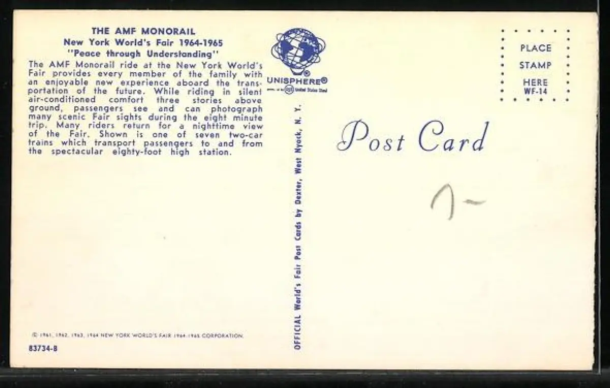 AK New York, Worlds Fair 1964-1965, The AMF Monorail, Ausstellung