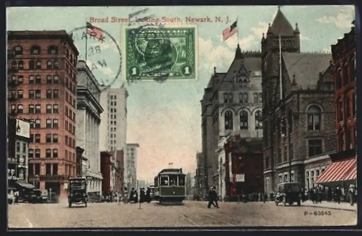 AK Newark, NJ, Broad Street, looking South, Strassenbahn
