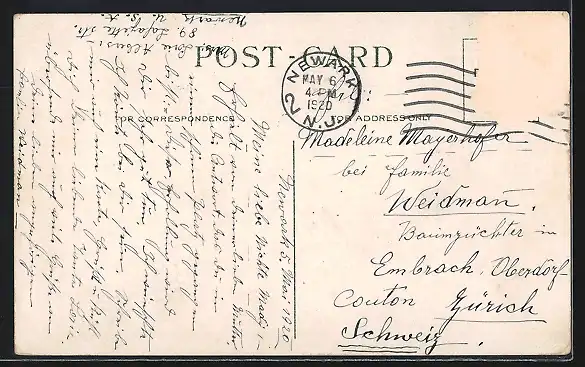 gelaufen 1920, Briefmarke entfernt, rückseitig Oberflächenschaden, Eckknick re. oben, Stempelspur, guter Zustand