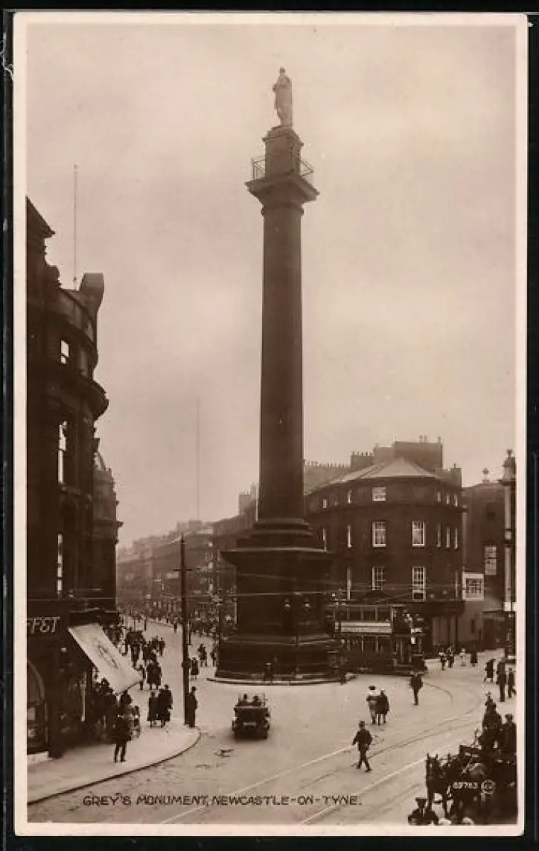AK Newcastle-on-Tyne, Grey`s Monument, Strassenbahn