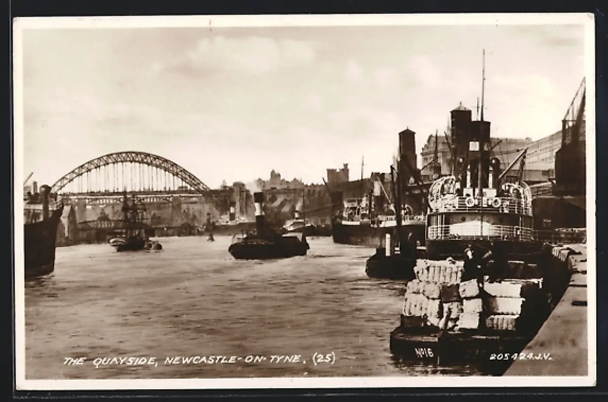 AK Newcastle-on-Tyne, The Quayside showing steamers and sidewheel tugs