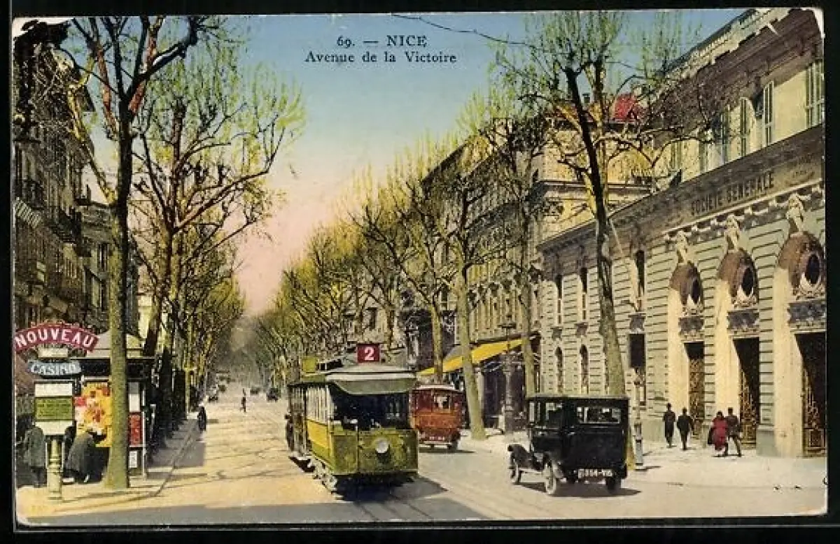 AK Nice, Avenue de la Victoire, Strassenpartie mit Strassenbahn