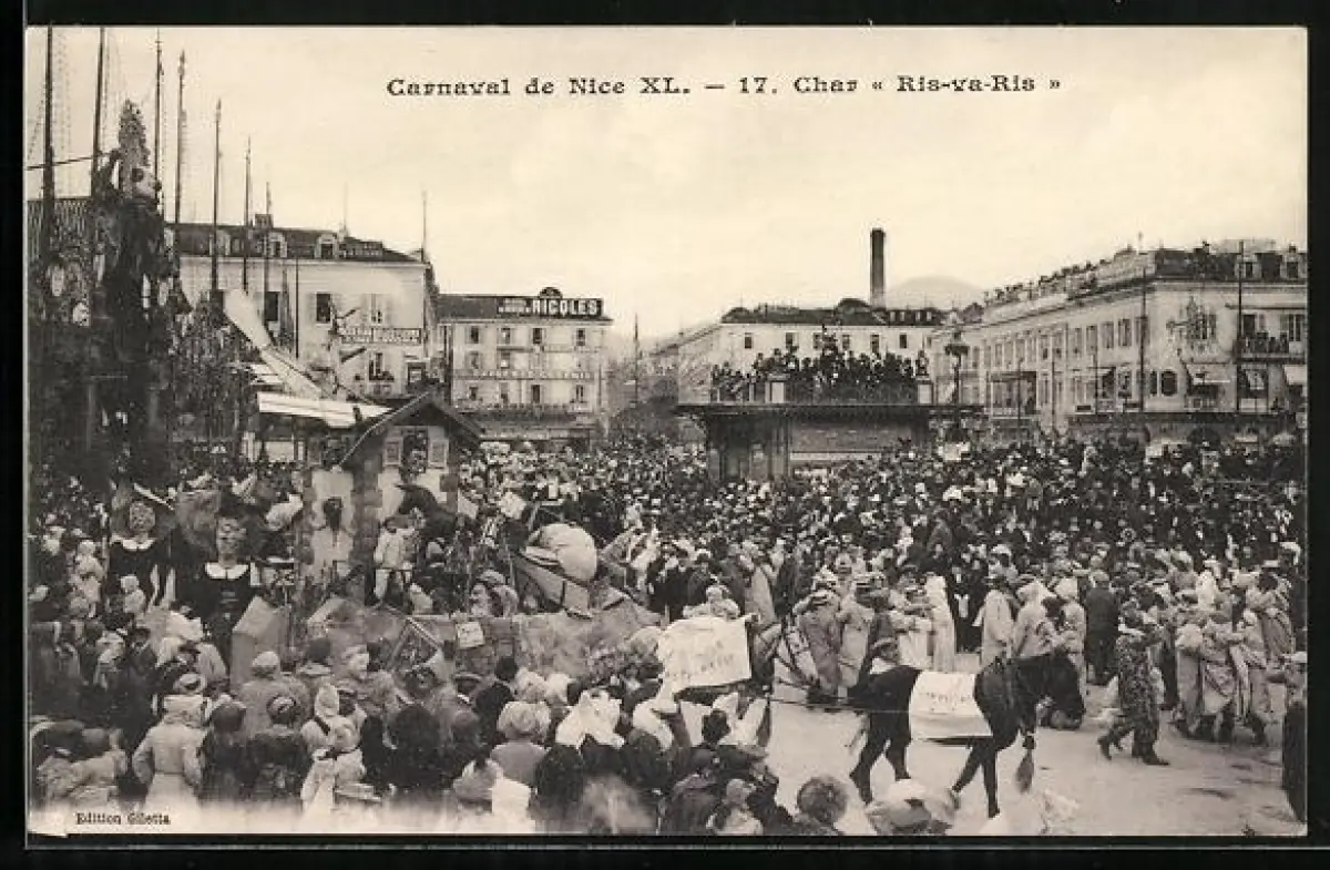 AK Nice, Carnaval XL, Char Ris-va-Ris mit Menschenmasse, Fasching