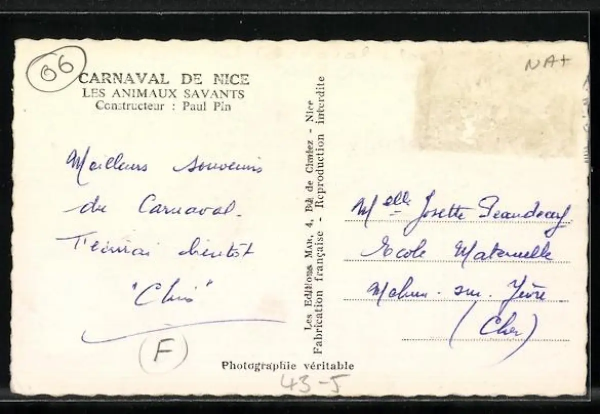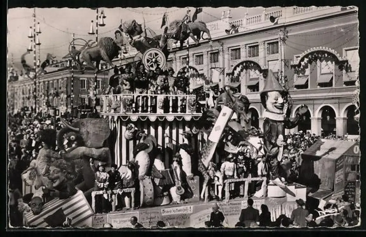 AK Nice, Carneval, Les Animaux Savants, Faschingswagen