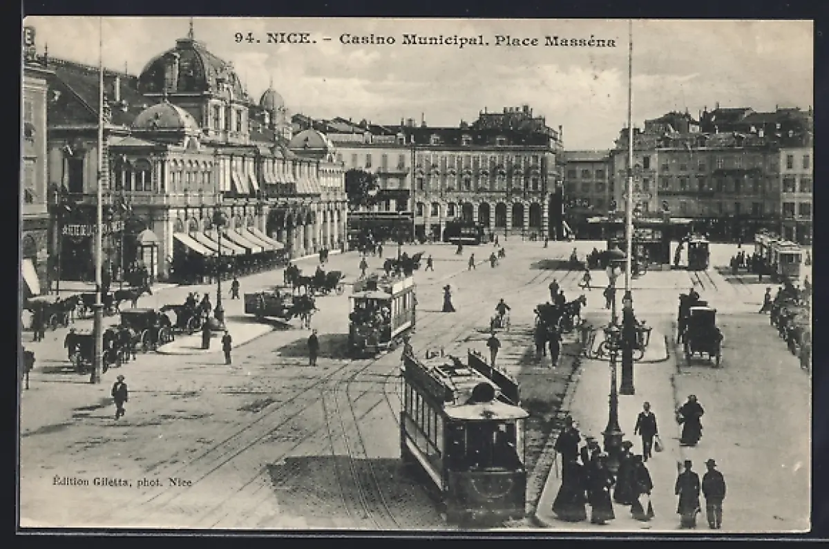 AK Nice, Casino Municipal, Place Masséna, Strassenbahn