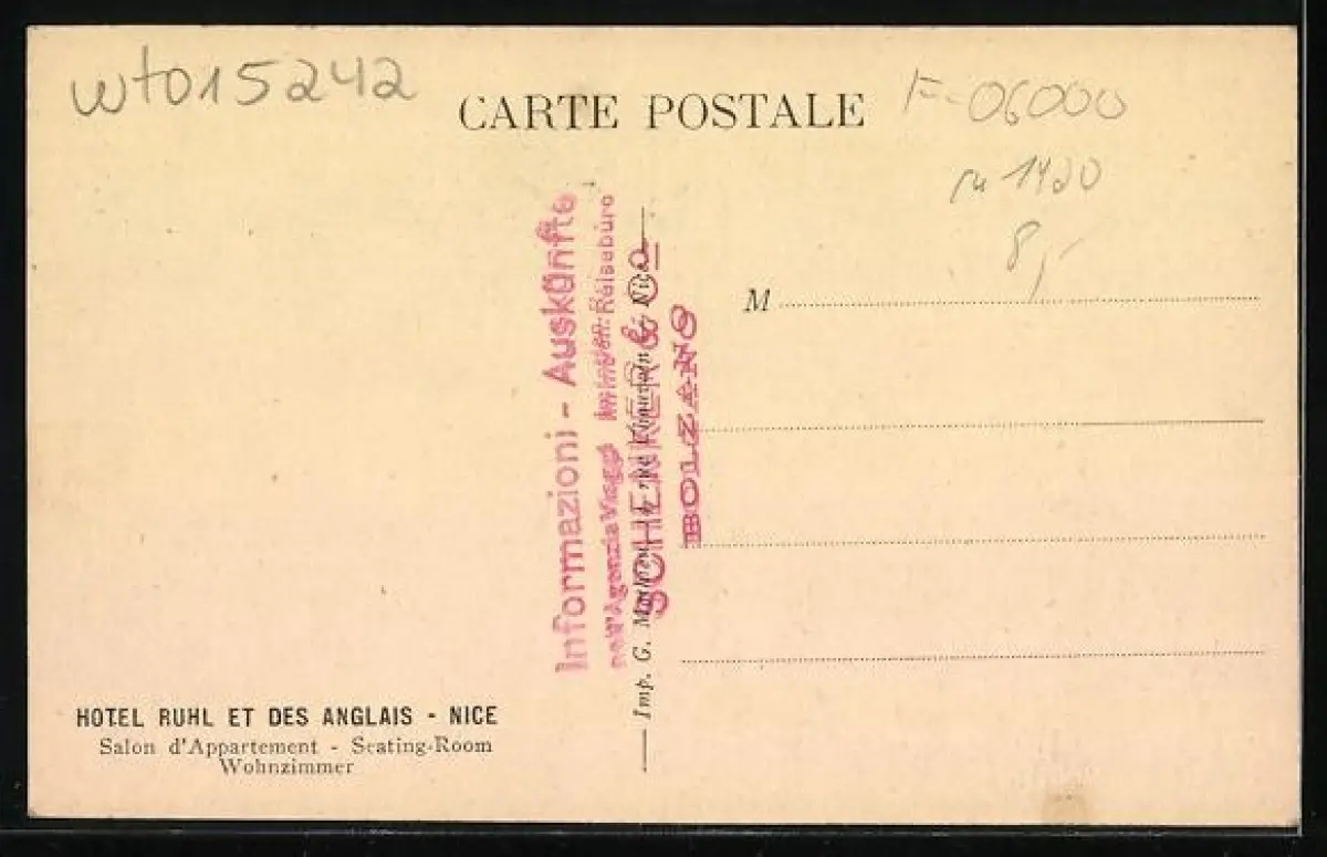 AK Nice, Hotel Ruhl et des Anglais, Salon d'Appartment