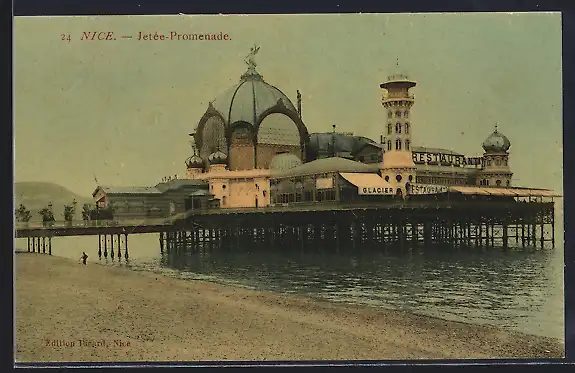 AK Nice, Jetée-Promenade mit Restaurant und Glacier am Meer