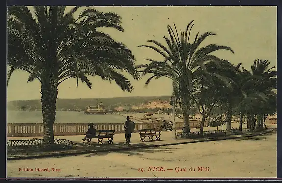 AK Nice, Quai du Midi avec palmiers et bancs au bord de la mer