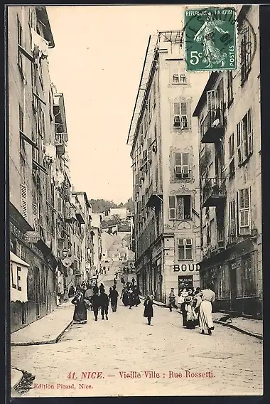 AK Nice, Vieille Ville: Rue Rossetti animée avec passants