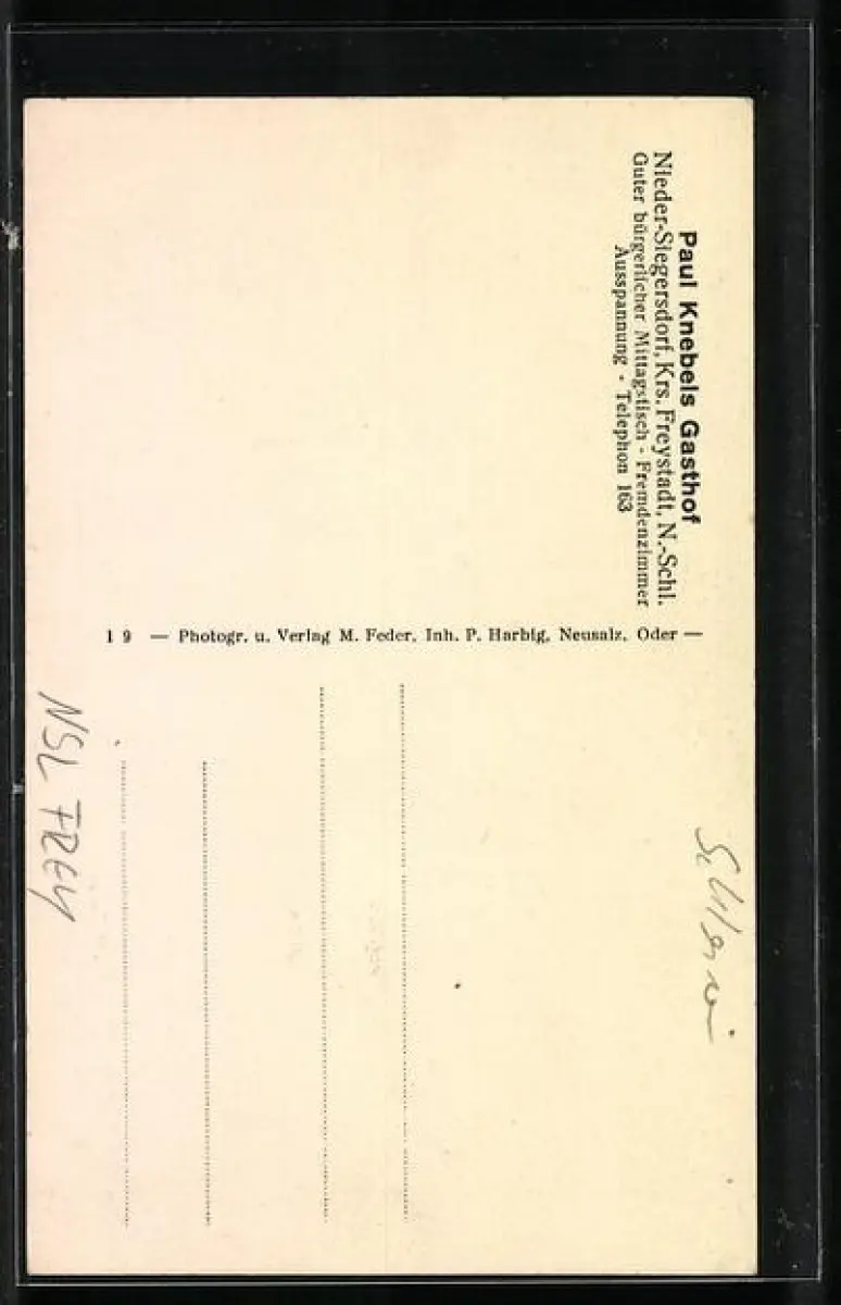 AK Nieder-Siegersdorf /Freystadt, Paul Knebel`s Gasthof mit Innansicht