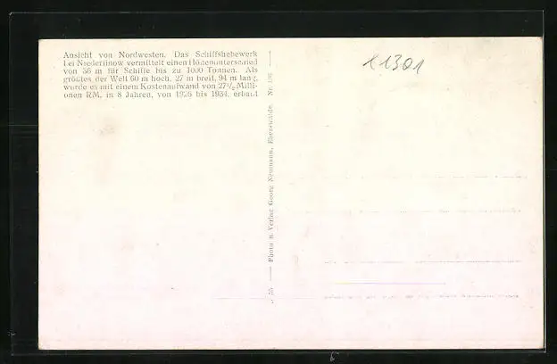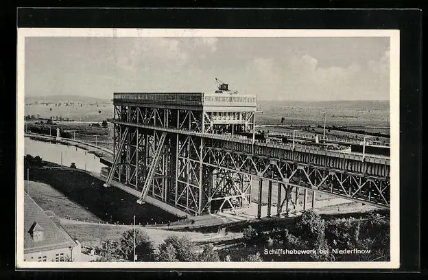 AK Niederfinow, Ansicht des Schiffshebewerks von Nordwesten, Dampfer