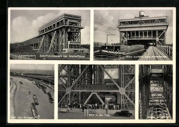 AK Niederfinow, Schiffshebewerk, Blick vom Rundgang, Gesamtansicht
