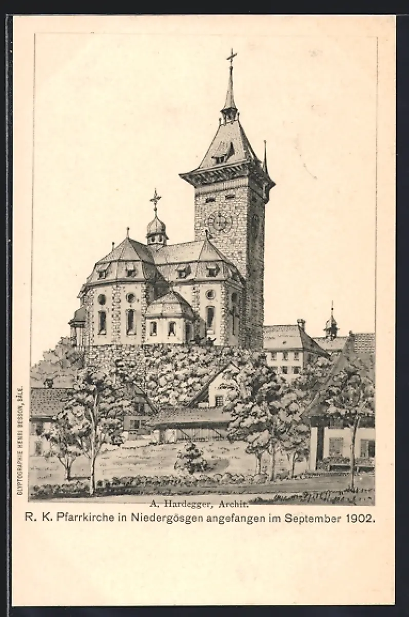 AK Niedergösgen, R. K. Pfarrkirche, Architekt A. Hardegger
