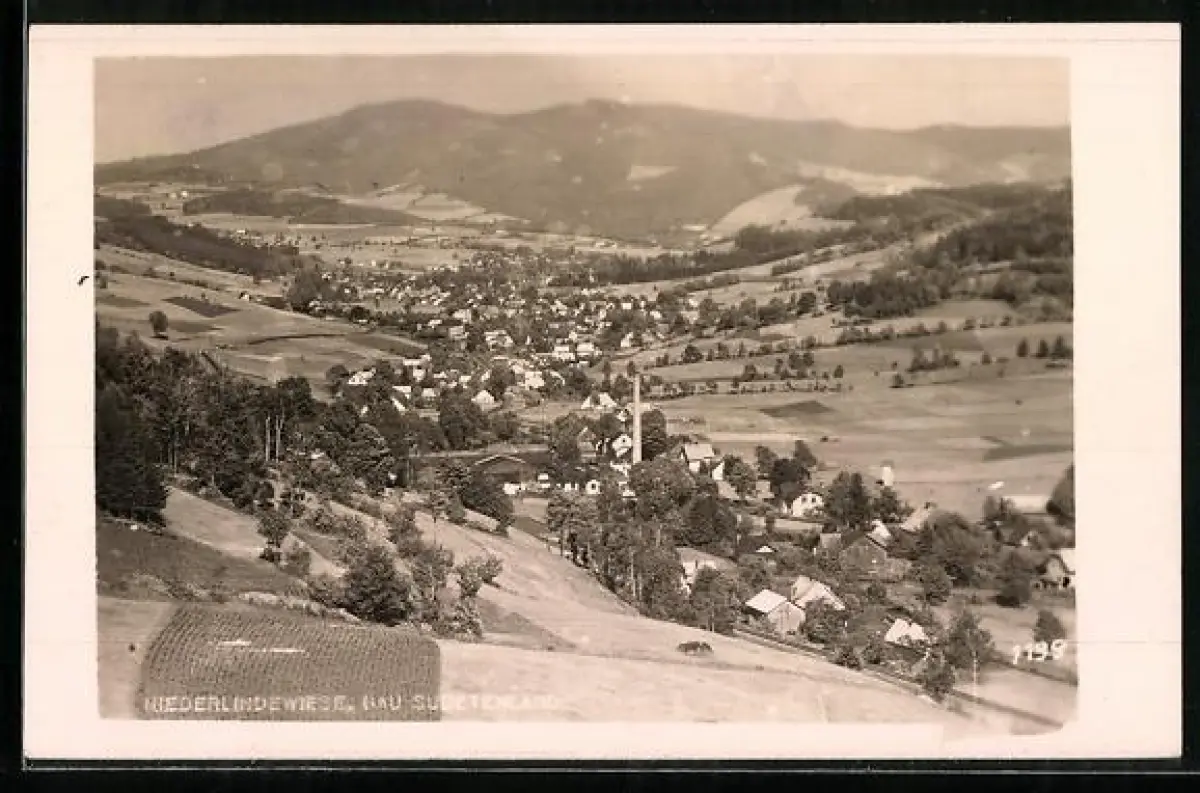 AK Niederlindewiese /Sudetenland, Ortsansicht im Tal