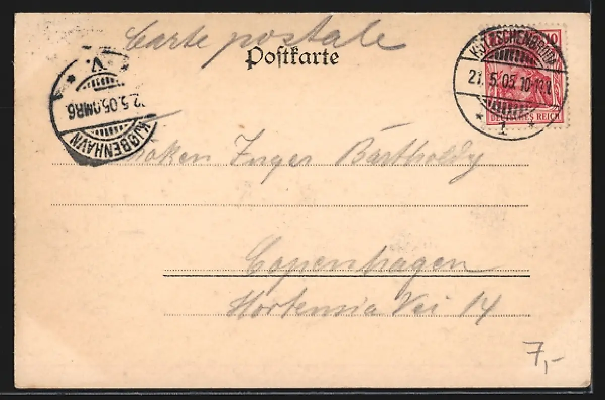 alte Ansichtskarte, gelaufen 1905, Stempelspur, guter Zustand