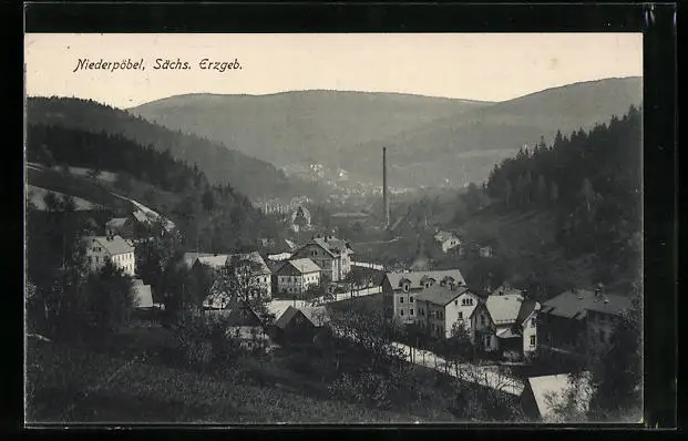 AK Niederpöbel im sächs. Erzgebirge, Generalansicht mit Talpanorama
