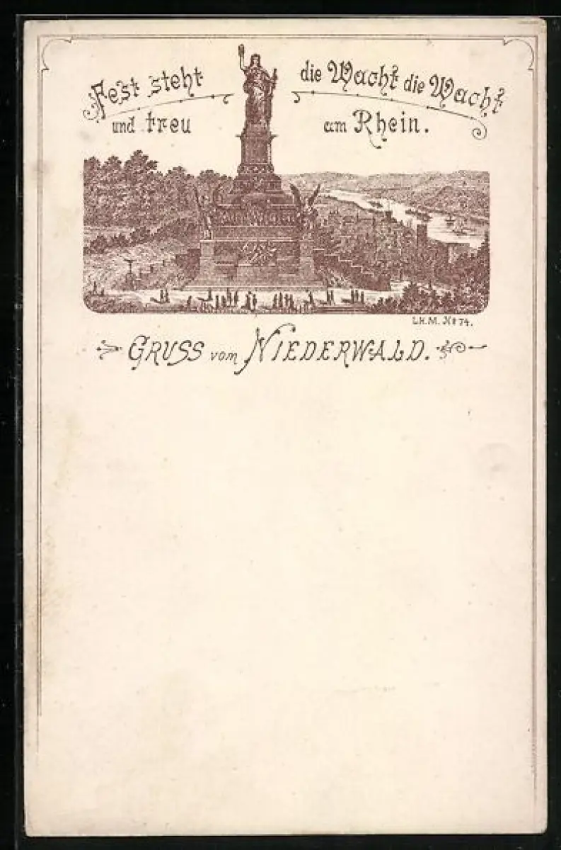 AK Niederwald, National-Denkmal, Fest steht und treu die Wacht die Wacht am Rhein