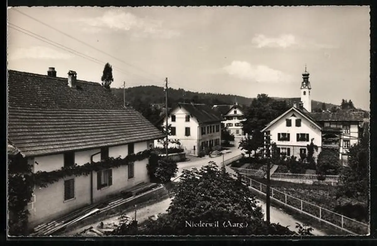 AK Niederwil /Aarg., Strassenpartie mit Bäumen