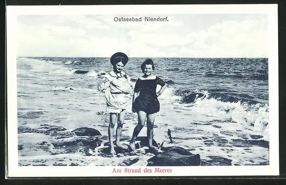 AK Niendorf, Zwei junge Mädchen am Strand des Meeres
