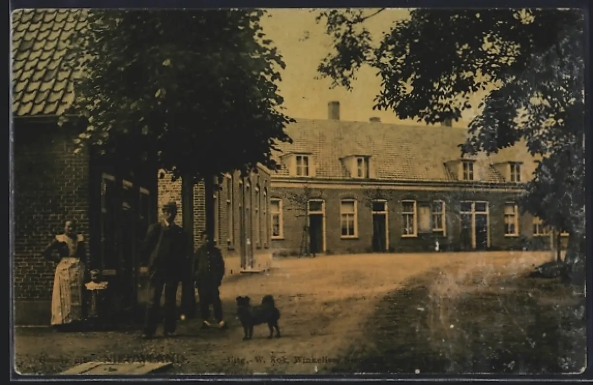 AK Nieuwland, Strassenpartie mit Anwohnern und Hund