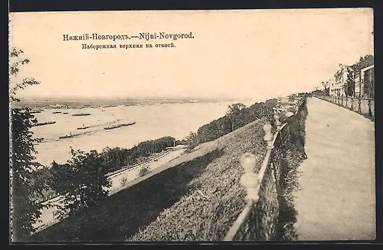 AK Nijni-Novgorod, Strassenpartie mit Blick auf Schiffsverkehr
