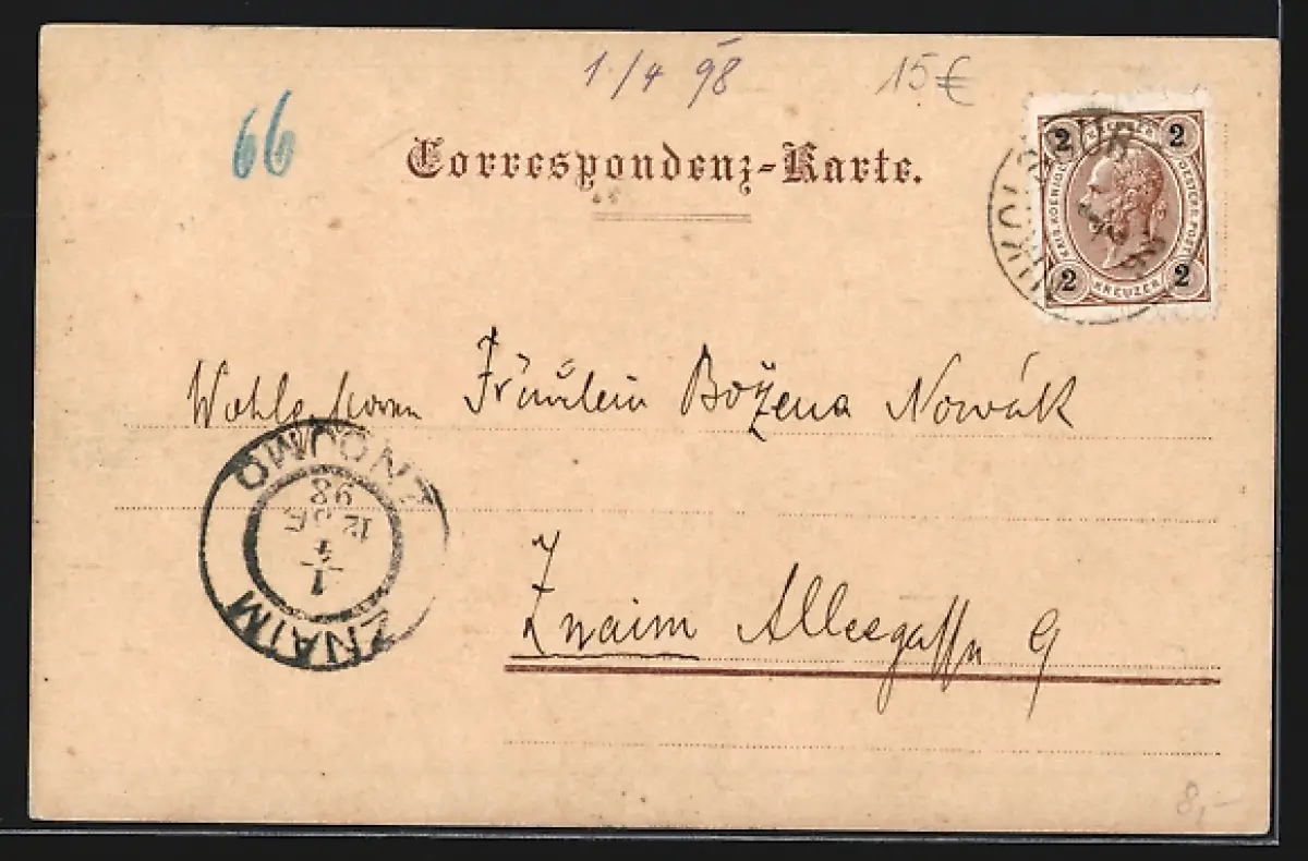 alte Ansichtskarte, gelaufen 1898, guter Zustand