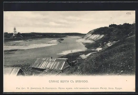 AK Nischni-Nowgorod, Wolga- Zusammenfluss mit der Oka, Ansicht vom Ufer