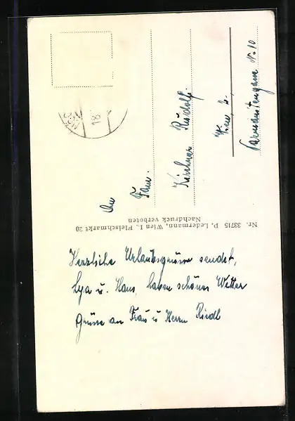 alte Ansichtskarte, gelaufen, Briefmarke entfernt, guter Zustand