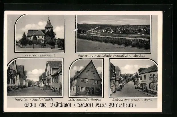 AK Nöttingen /Kreis Pforzheim, Gasthaus Traube in der Hauptstr., Gasthaus Löwen in der Brückenstr.